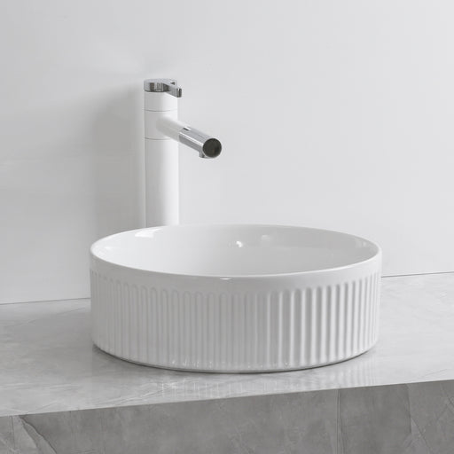 View full details400mm Fluted Round Gloss White Above Counter Basin