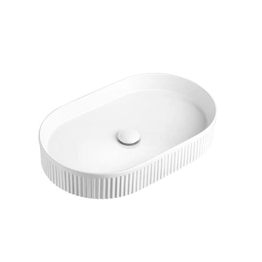 500mm Fluted Oval Matte White Above Counter Basin