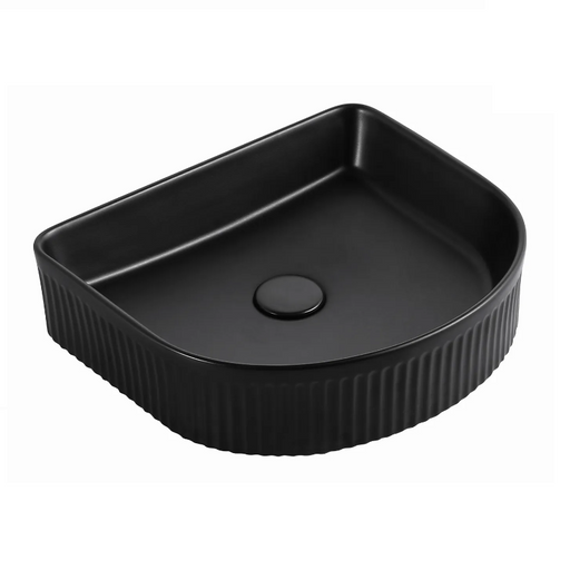 Fluted Pill Matte Black Above Counter Basin By Indulge® 500 x 320 x 120mm Fluted French Design Matte Black Finish Fully Vitreous China No Tap Ho...