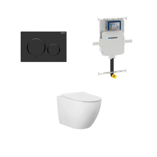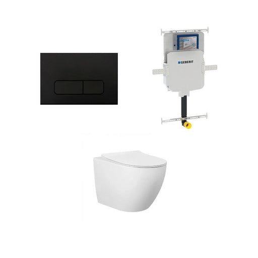 View full detailsGeberit Cremona Rimless Tornado In Wall Toilet Suite Package - Matte Black Round Button