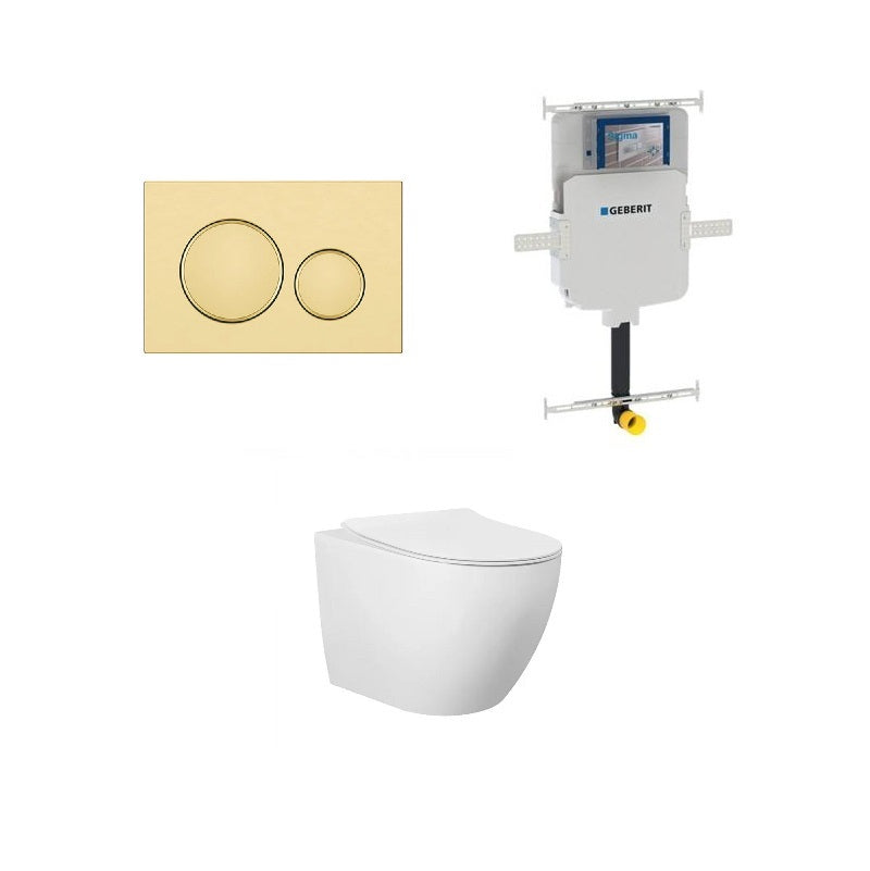View full detailsGeberit Cremona Rimless Tornado In Wall Toilet Suite Package - Round Brushed Gold / Brass Button