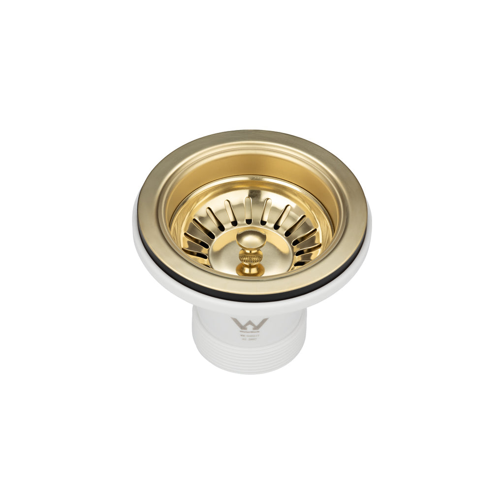 Carysil Brushed Gold 90mm Waste Kit 304 Stainless Steel Top ABS Quality Plastic Base PVD Brushed Gold Finish Usage: Granite & Stainless Stee...