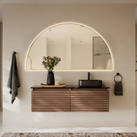 Arched Touchless 1500 x 800 Brushed Gold LED Mirror - Three Light Temperatures
