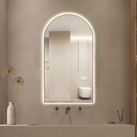 Arched Touchless 500 x 900 Back-Lit Brushed Gold LED Mirror - Three Light Temperatures