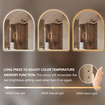 Arched Touchless 750 x 1000mm Back-Lit Brushed Gold LED Mirror - Three Light Temperatures