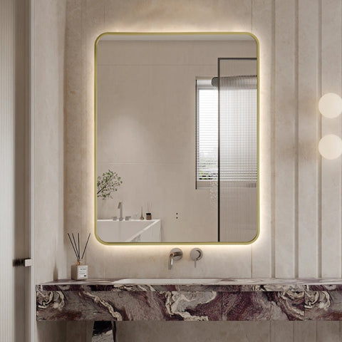 Curva Rectangle Brushed Gold 700 x 900 Touchless LED Mirror - Three Light Temperatures