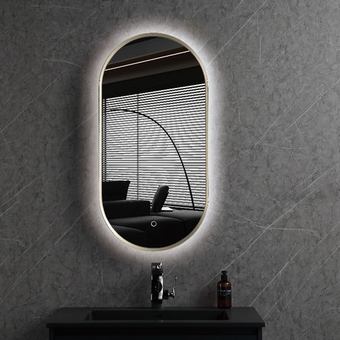 Oval 450 x 900mm Brushed Brass LED Mirror - Three Light Temperatures