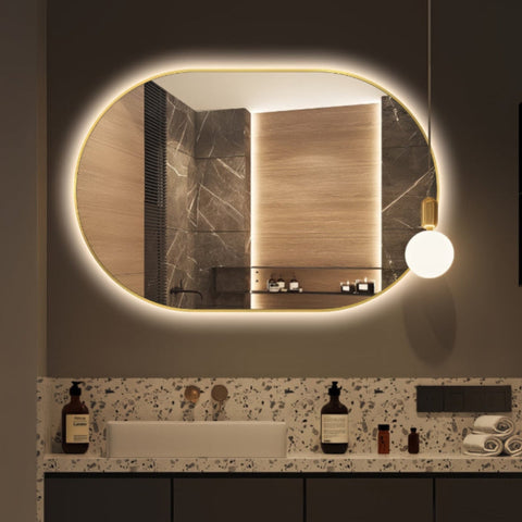 Oval Pill Touchless 900 x 600 Brushed Gold LED Mirror - Three Light Temperatures