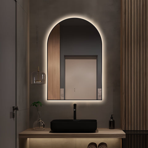 Arched Touchless LED Mirror - Three Light Temperatures By Indulge Size: 600 x 900 x 28mm Matte Black Framed Back-Lit Touch-Less Sensor Switch ...