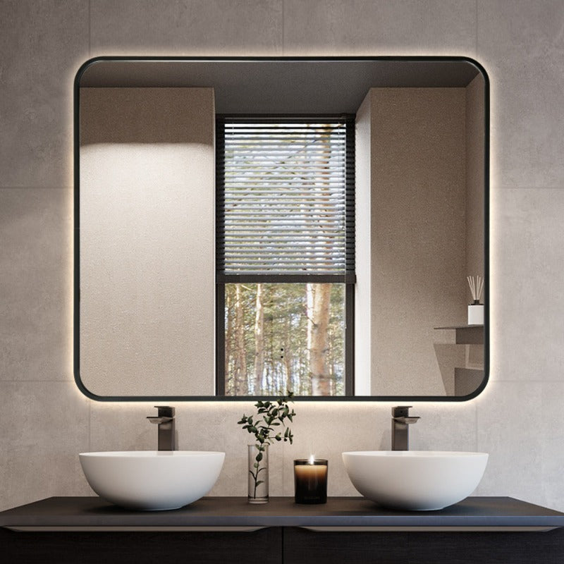 Curva Soft Square Touchless LED Mirror - Three Light Temperatures Size: 900 x 750 x 25mm Matte Black Framed Back-Lit Touch-Less Sensor Switch ...
