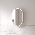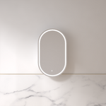 Luna LED 600 x 1000 Matte White Oval Pill Shaving Cabinet