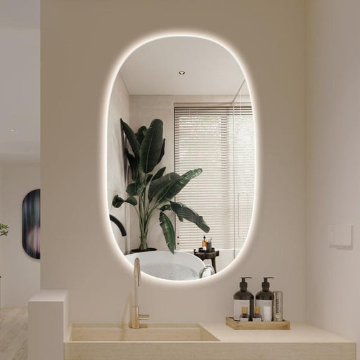 Oval Pill Touchless LED Mirror - Three Light Temperatures By Indulge Size: 600 x 900 x 28mm Brushed Gold Framed Back-Lit Touch-Less Sensor Swit...