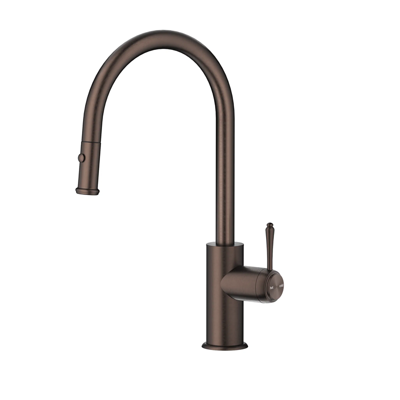 Mica Dusk Bronze Pull Out Heritage Gooseneck Sink Mixer Australian Standard Watermark Certified Superior PVD Finishes LEAD Free Guarante...