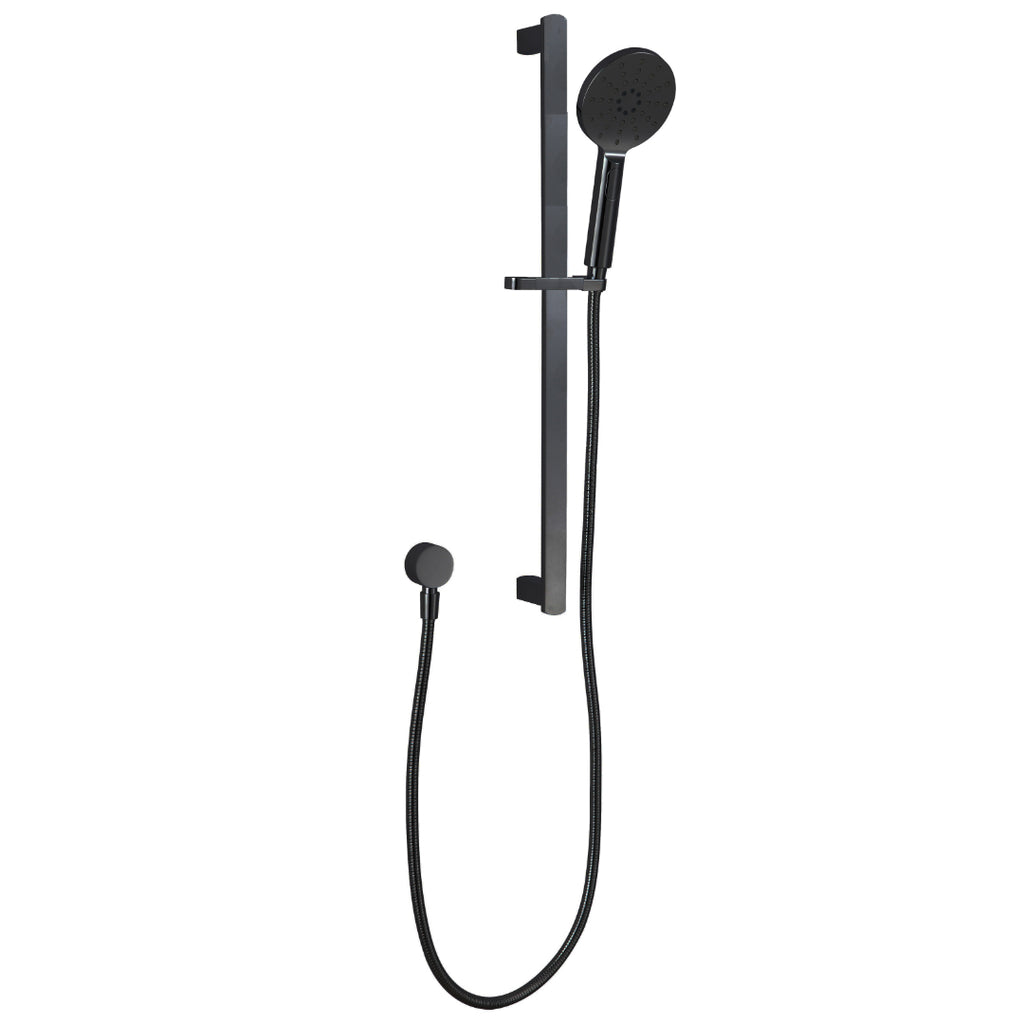 Cesena Matte Black Shower Rail Shower rail unit Solid brass construction Electroplated matte black finish 3 function hand held head 1.5m PVC hos...