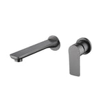 Glamour Gun Metal Wall Basin Mixer & Bath Spout - Round Back Plates