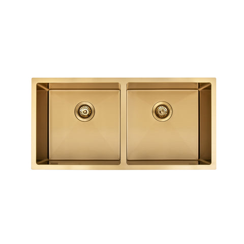 Brushed Gold 900 x 450 x 230mm Double Bowl Kitchen Sink