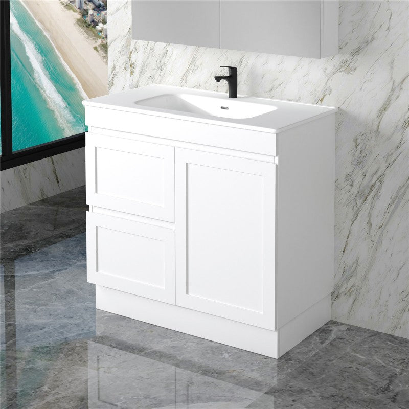View full detailsMiami 900 Matte White Vanity With Kickboard - Left Hand Drawers