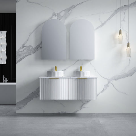 Thena 1200mm Matte White Fluted Wall Hung Vanity