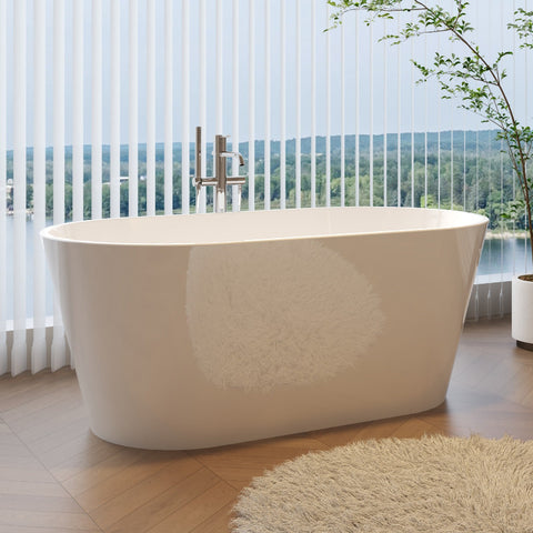 Aria 1500 Oval Freestanding Bath Tub 1500 x 790 x 590mm High-Quality Gloss White Finish Asymmetrical Contemporary Design Double Skinned Sanitary ...