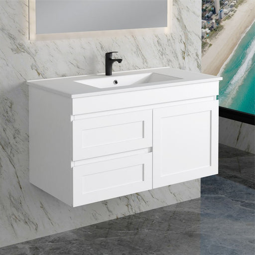 Miami 900 Matte White Wall Hung Vanity - Left Hand Drawers