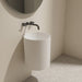 A striking sculptural addition for bathrooms where modern form, clean lines, and smart space-saving design come together.