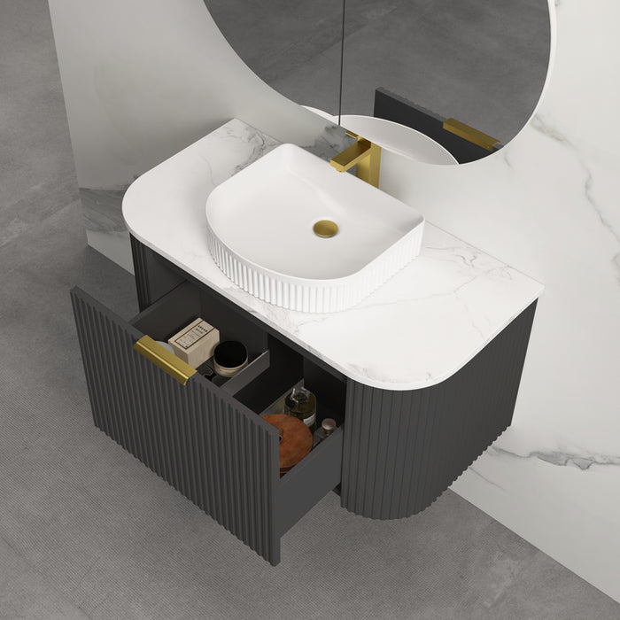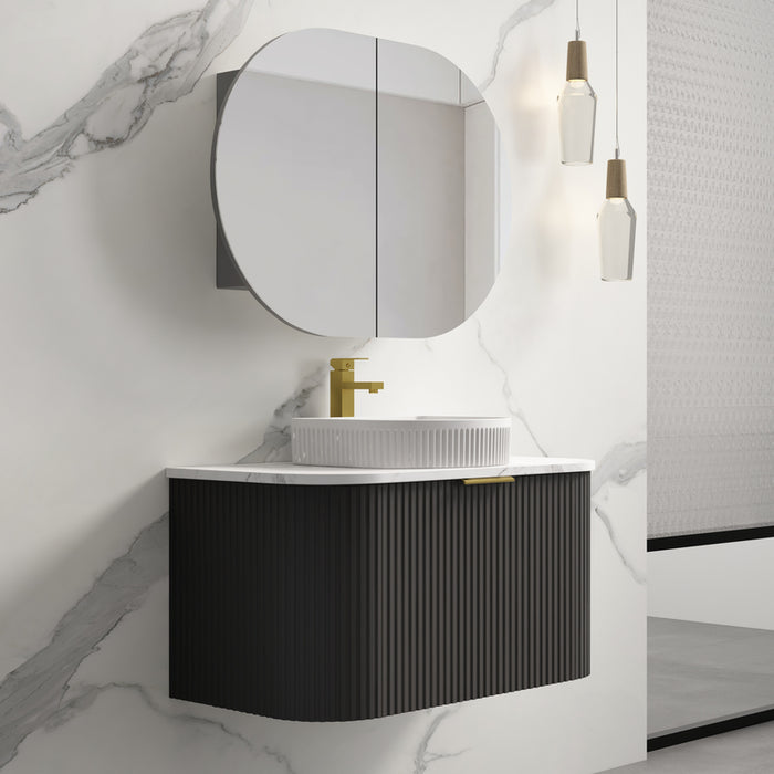 Rio 900 Curved Fluted Matte Black Wall Hung Vanity