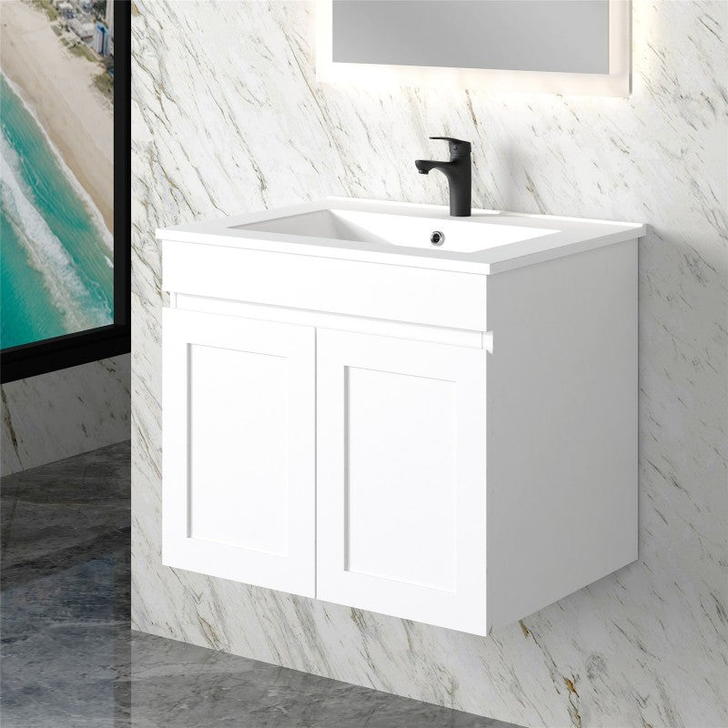 600 Miami Wall Hung Vanity Matte White Cabinet Shaker Style MDF Cabinet Vitreous China 1TH Basin Soft Close Doors Pop up Waste Not Included 3...
