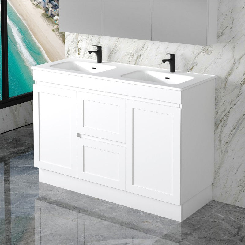 Miami 1200 Double Matte White Vanity With Kickboard 1200 x 460 x 820mm Matte White Cabinet Center Draws For Plumbing Purchase Shaker Style MDF...