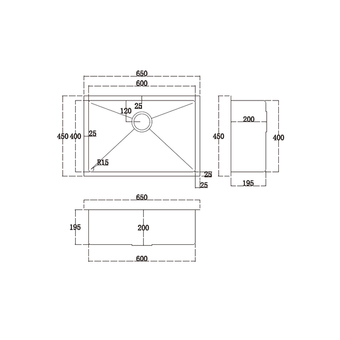 650 x 450 x 200 mm Kitchen & Laundry Sink