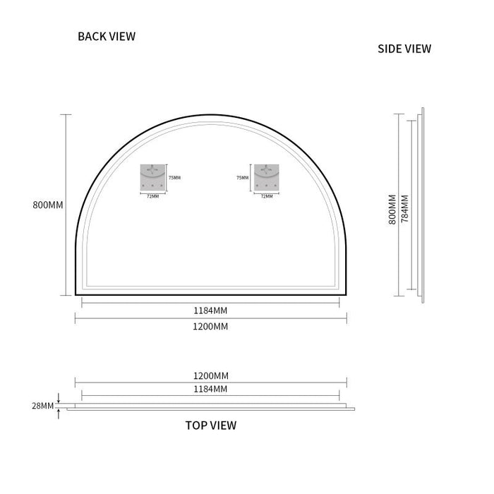 Arched Brushed Gold 1200 x 800 Framed Mirror