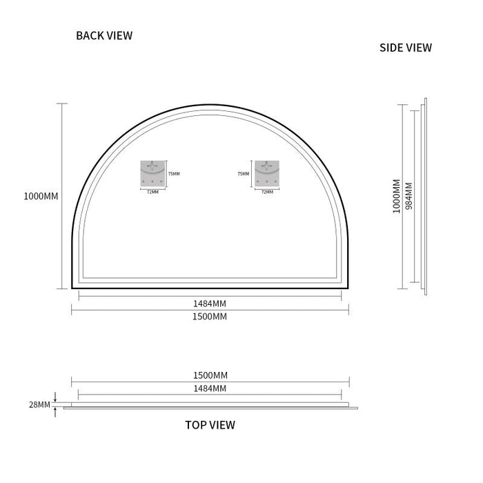 Arched Matte Black 1500 x 1000 Framed Mirror