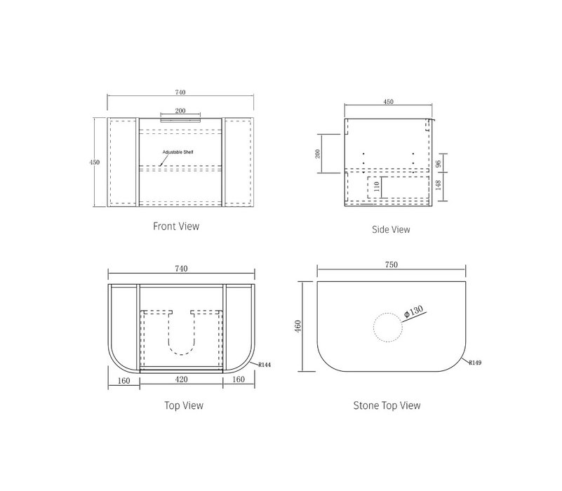 Bondi 750 Curved Matte White Oak Wall Hung Vanity
