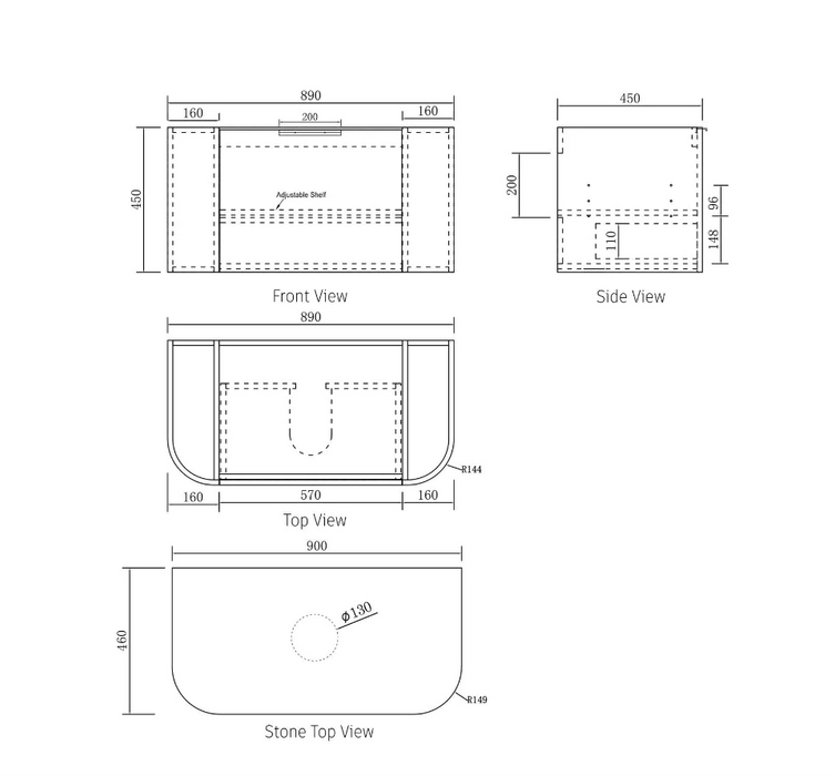 Bondi 900 Curved Matte White Oak Wall Hung Vanity
