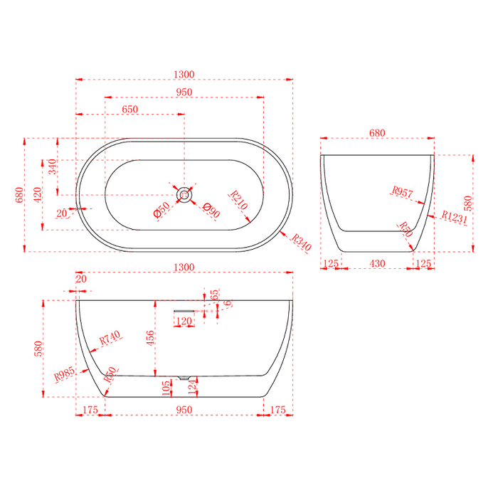 Catania Oval Egg 1300mm Matte White Designer Freestanding Bath Tub