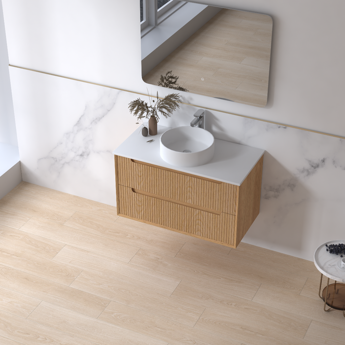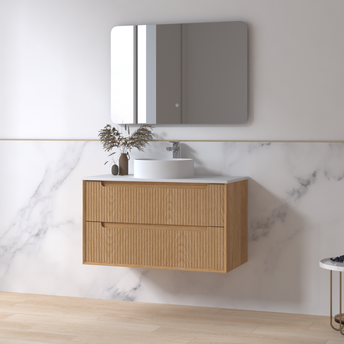 Fiora 900mm Light Walnut Fluted Wall Hung Vanity