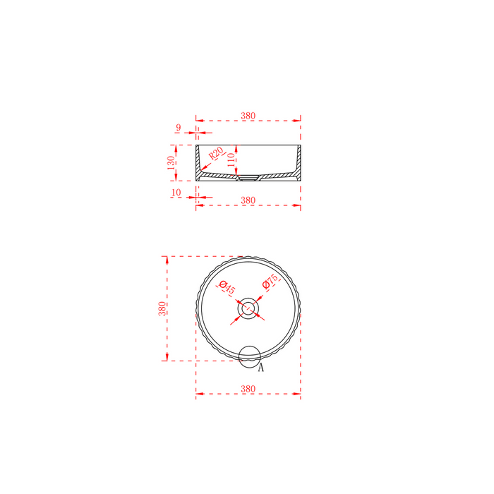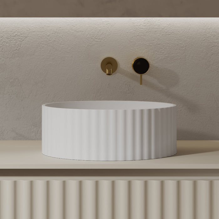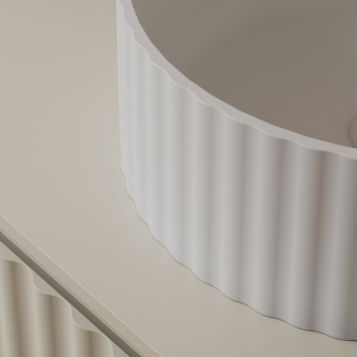 Flora 380mm Matte White Fluted Solid Surface Stone Round Above Counter Basin