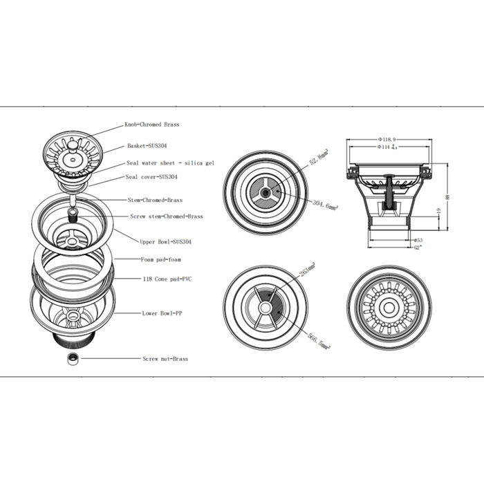 • Construction: 304 Stainless Steel