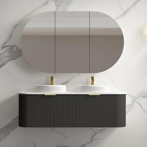 Rio 1500 Curved Fluted Matte Black Wall Hung Vanity