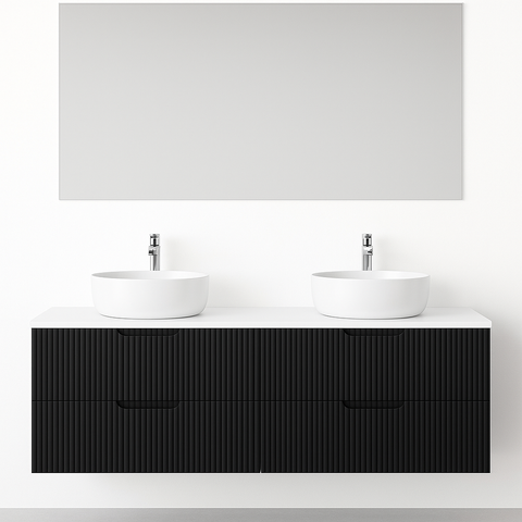 Kelsa 1500 Double Fluted Matte Black Wall Hung Vanity