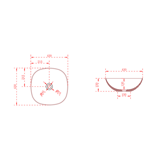 Kira 430mm Solid Surface Stone Soft Square Above Counter Basin