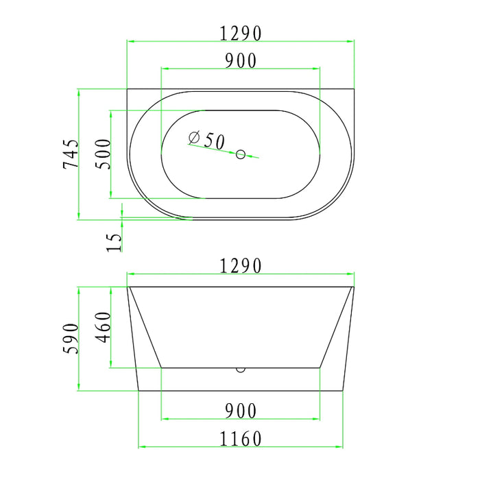 Lara 1300 Gloss White Back to Wall Freestanding Bath Tub