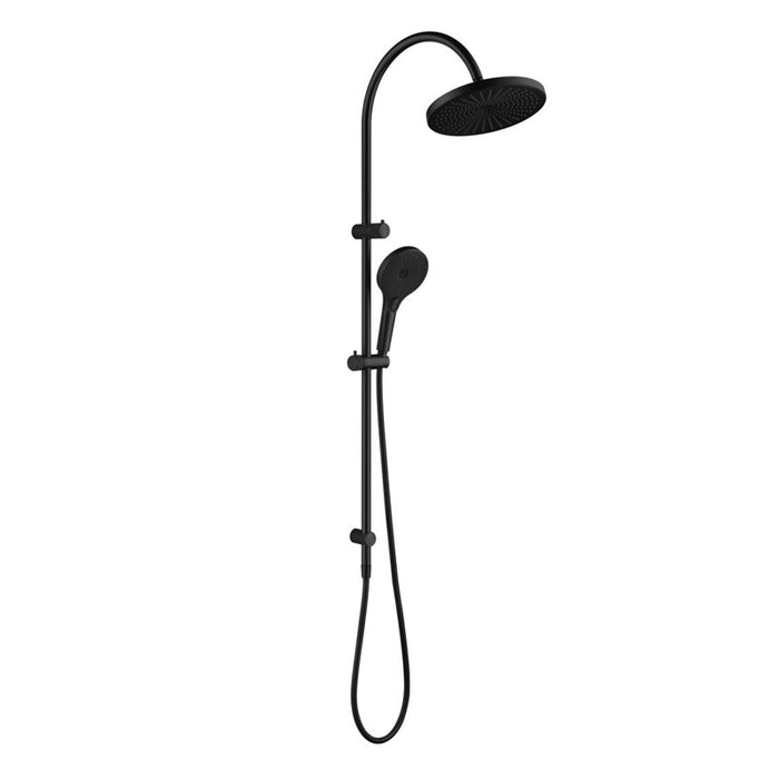 Mica Fluted Matte Black Gooseneck Dual Shower Rail