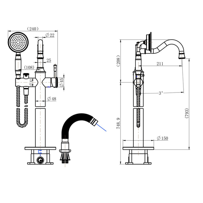 Montpellier Traditional Freestanding Bath Spout With Mixer