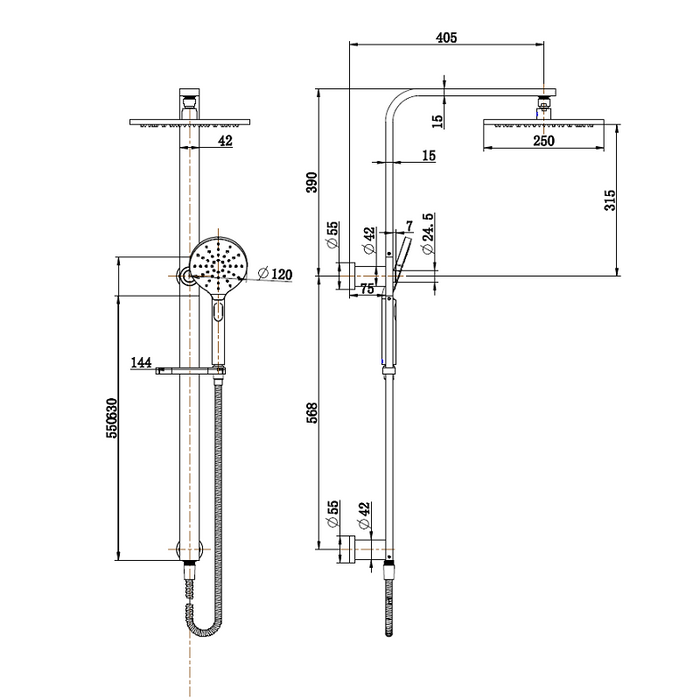 Nova Warm Brushed Nickel Multifunction Shower Rail
