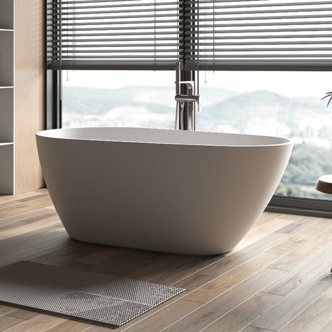 Odessa 1500mm Oval Asymmetrical Matte White Freestanding Bath Tub