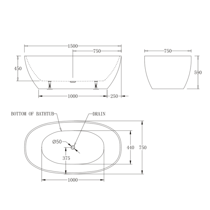 Oval Egg Shape 1500mm Gloss White Freestanding Bath