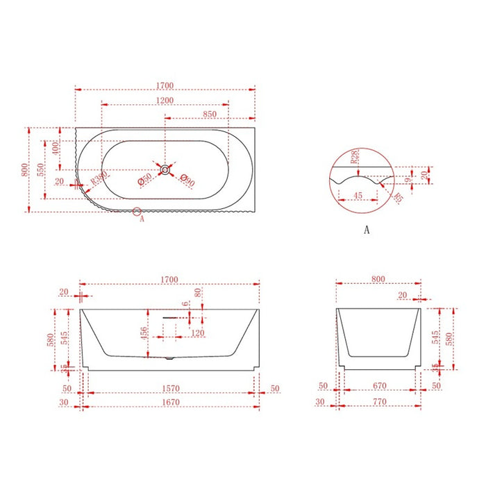 Rivata Fluted 1700mm Matte White Right Corner Fit Designer Round Freestanding Bath