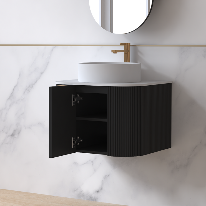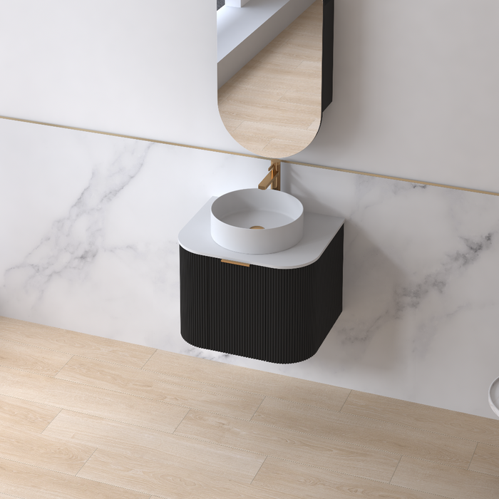 Siena 600 Curved Matte Black Fluted Wall Hung Vanity