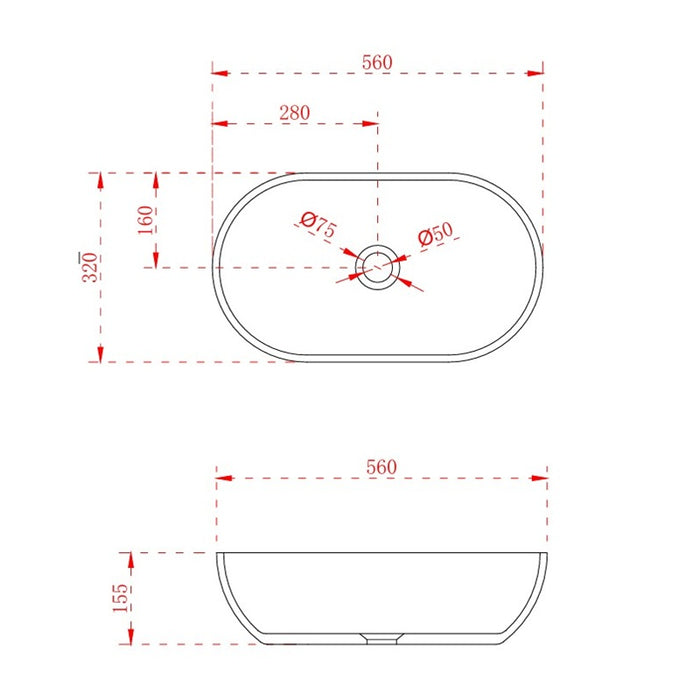 Vara 560mm Solid Surface Stone Oval Above Counter Basin
